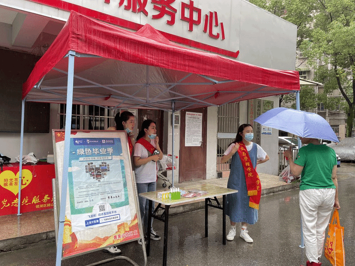 闲置衣物,用之无感,弃之可惜。如果把它们送给有需要的人,则是传递爱心、温暖他人的大爱之举。为帮助困难群众,让闲置衣物“变废为宝”,继续发挥价值,2021年6月19日,太阳集团2018登录网址博谘实践队携手护理学院南丁格尔志愿服务队-爱心萌芽小队,共同举办了为期两天的“绿色毕业季”旧衣回收活动。志愿者们分别在赭麓校区食堂门口、黄果山社区、教职工宿舍三处组织旧衣爱心回收活动,鼓励大家行动起来,为更多需要帮助的人送去温暖。