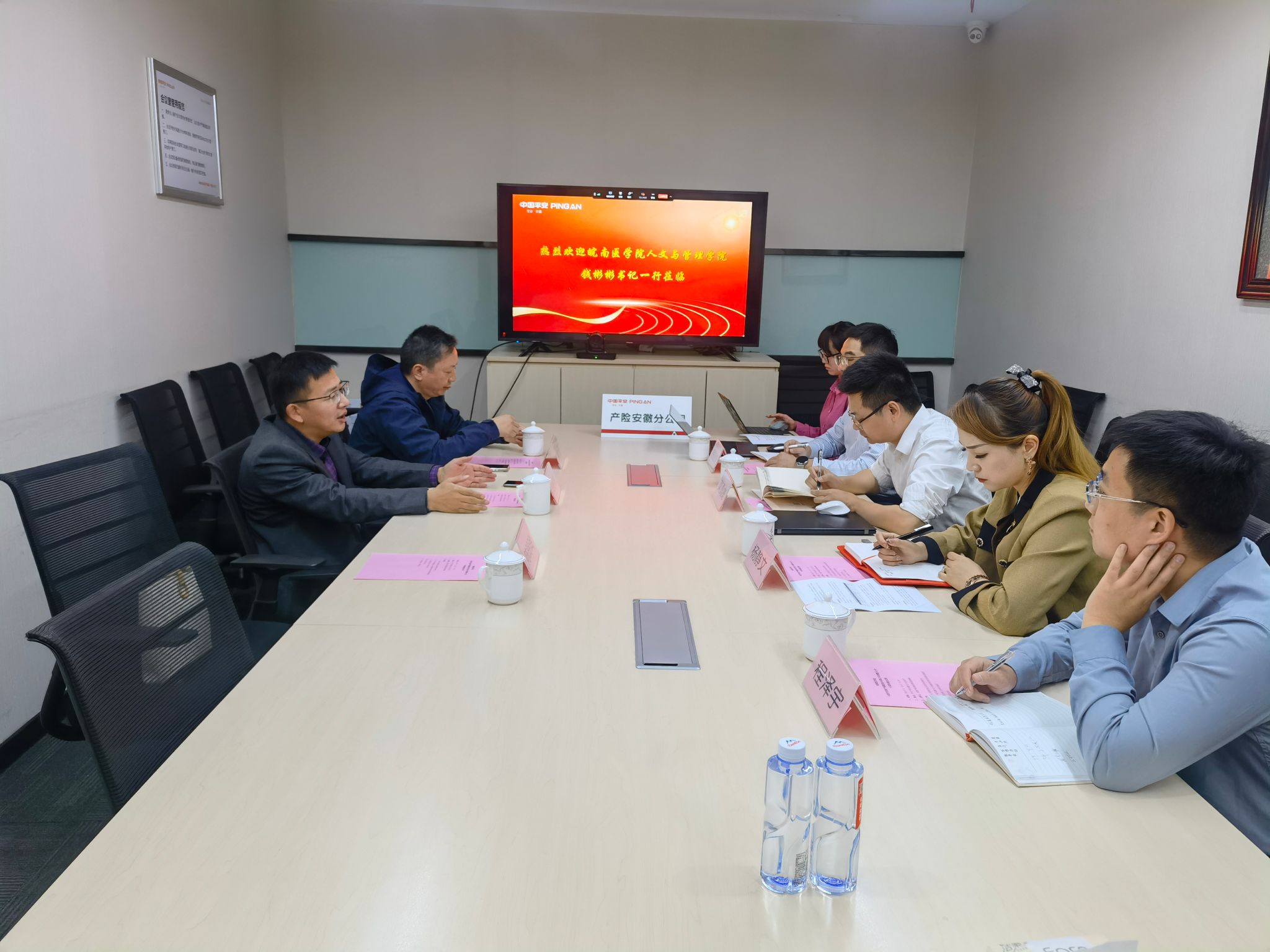 为进一步推动实习就业工作高质量发展,11月6日,太阳集团2018登录网址党委副书记钱彬彬、医疗保险专业负责人俞彤一行赴中国平安财产保险股份有限公司安徽分公司洽谈实习就业相关事宜。