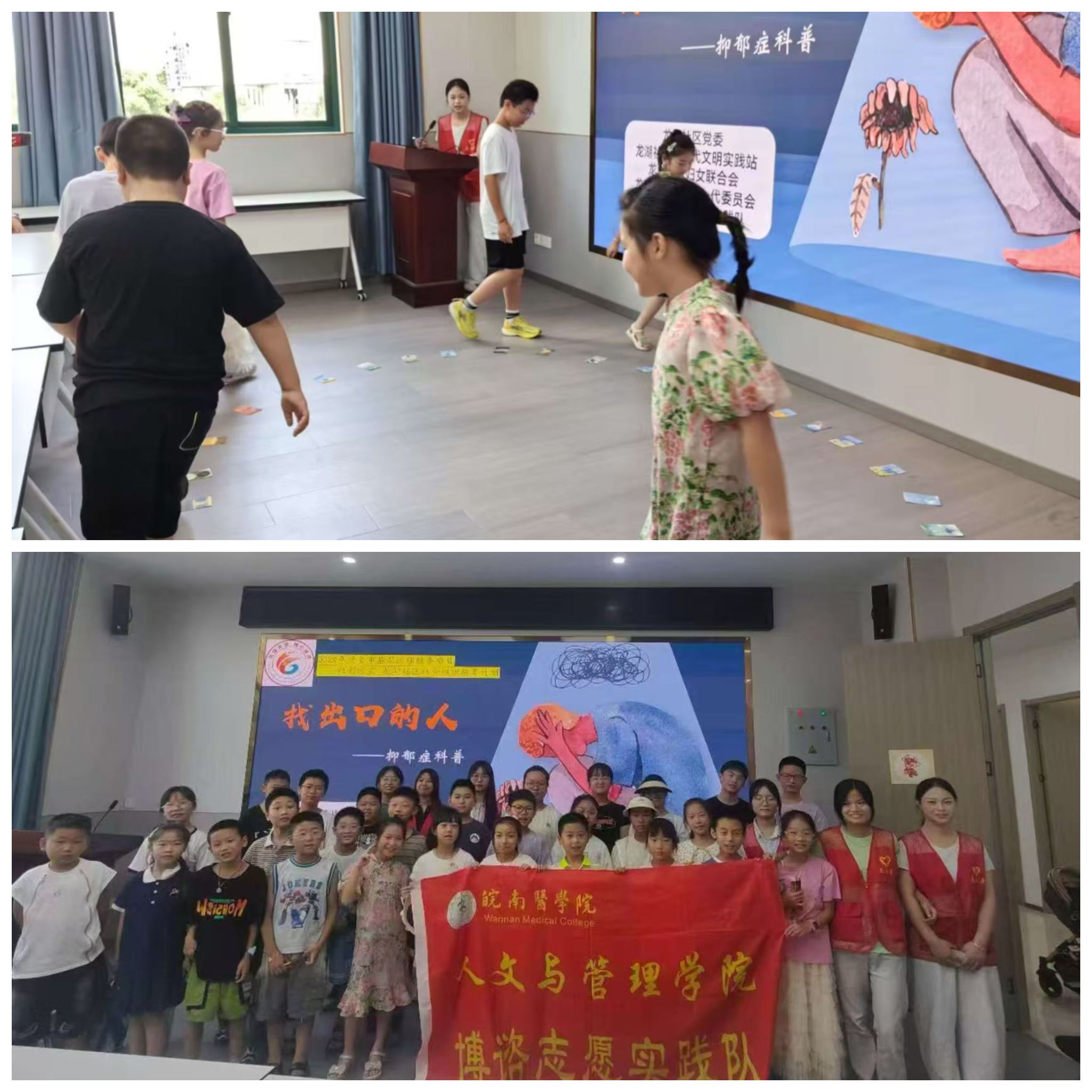 为启蒙儿童心理健康意识,播撒积极心态的种子,太阳集团2018登录网址博谘实践队双线并进,于7月初相继走进龙湖社区,开展“找出口的人——抑郁症科普宣讲”与“来自星星的孩子——孤独症科普宣讲”两大主题实践活动。