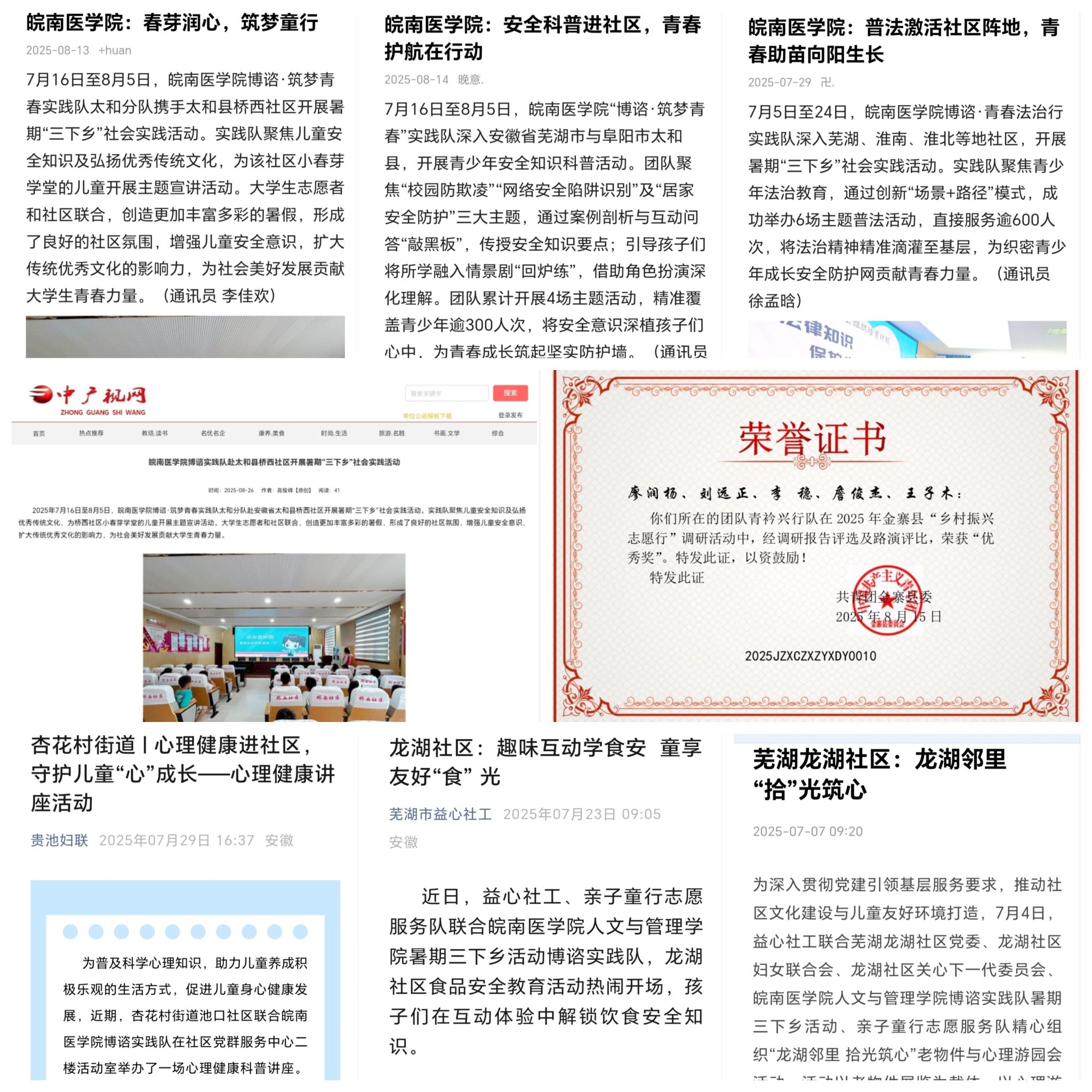 青春实践绽芳华,砥砺前行谱新篇。 七支队伍,七个方向,共同书写了太阳集团2018登录网址2025年暑期“三下乡”社会实践的绚丽篇章。活动不仅将知识、技术与关怀送到基层,更让同学们在广阔天地中磨练意志、增长才干,深刻理解了“国之大者”。学院将持续深化实践育人体系,引导更多学子将课堂学习与社会实践紧密结合,为“健康中国”和乡村振兴战略实施贡献更多的皖医人的智慧与力量。(杨依婷、廖润杨等/文 王雨晨等/摄)