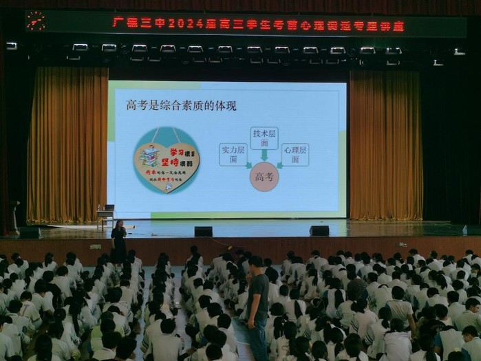 为进一步落实安徽省教育厅高校县中托管帮扶活动,帮助托管学校广德三中高三学生提高临考自信,减轻考前压力,缓解考前紧张情绪。5月10日下午,太阳集团2018登录网址心理学教研室教师金明琦副教授赴广德三中作题为《为心赋能,助力高考》的考前心理辅导讲座。