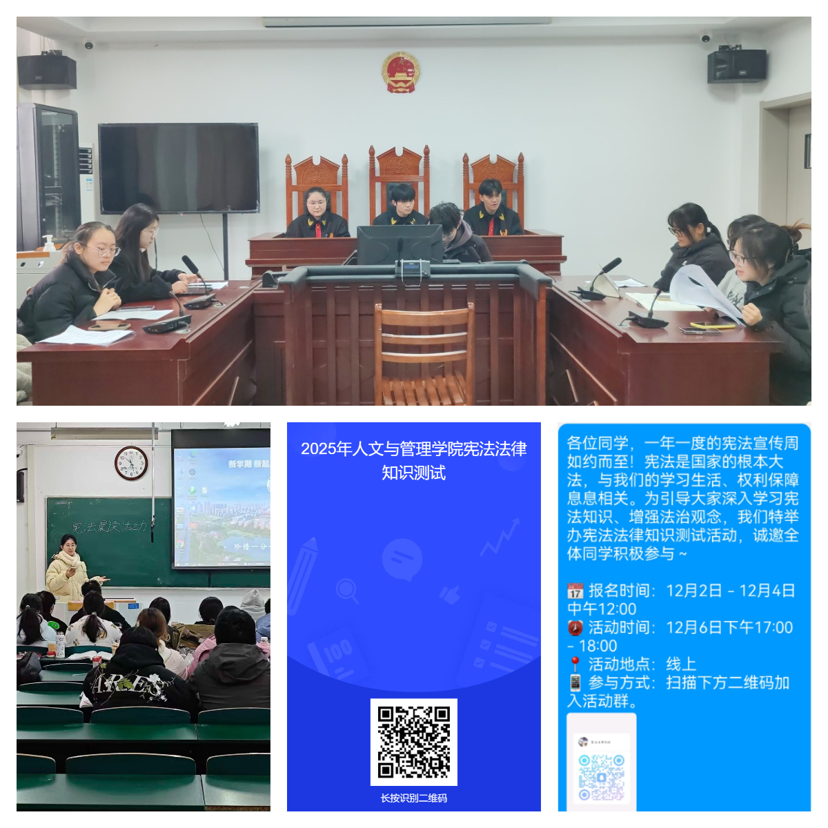 12月5日,学院举办大学生模拟法庭审判活动,该审判围绕“从35周岁到38周岁——公务员报考年龄调整的宪法分析”这一主题展开,原告方与被告方围绕公务员报考年龄限制规定是否侵犯公民平等权与劳动权这一议题,展开激烈辩论。通过沉浸式、观摩式的“模拟法庭”活动,让学生切身感受法律的威严,提升学法、知法、懂法的能力。此外,太阳集团2018登录网址组织宪法法律知识测试以及共度一段“宪法晨读”时光活动,有效深化广大师生对宪法精神的理解,夯实了宪法知识储备,筑牢了宪法知识根基,提升了宪法实践素养。