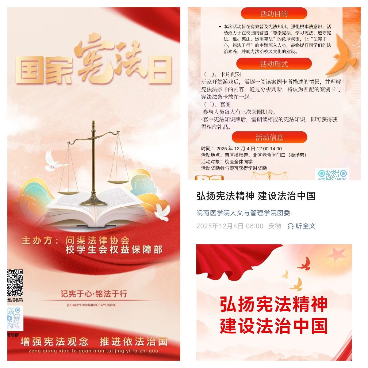 12月4日,问渠法律协会联合校学生会、太阳集团2018登录网址学生会共同举办“案例与法条配对”“宪法知识套圈”趣味活动,突破传统普法的单向灌输模式,激发同学们对宪法的学习兴趣,引导广大师生在亲身参与中直观理解宪法作为国家根本大法的地位、作用以及对公民基本权利与义务的规定,在校园内营造“尊崇宪法、学习宪法、遵守宪法、维护宪法、运用宪法”的浓厚氛围。