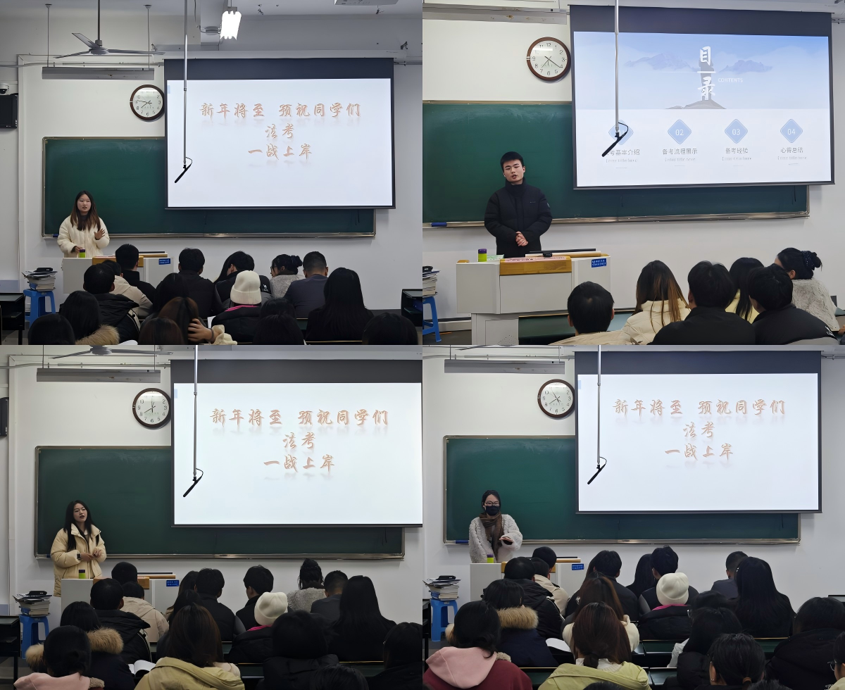 12月22日,太阳集团2018登录网址在“一站式”学生社区开展国家统一法律职业资格考试(法考)经验交流会。会议邀请法学教研室副主任王翔以及2022级通过“法考”的学生分享经验,2023级、2024级法学专业全体学生参会,会议由学院党委副书记钱彬彬主持。