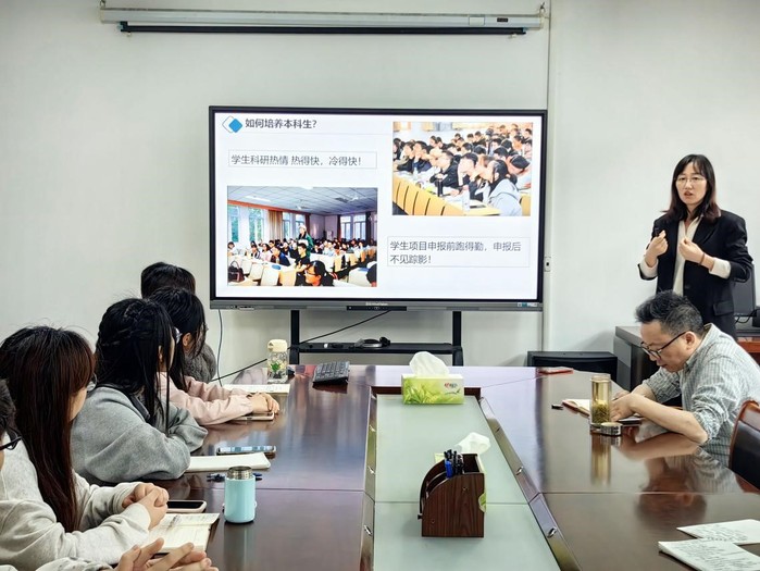 国实以“本科生科研创新动力机制研究”为题,基于国内外本科生科研培养的发展情况,结合“启明星”小组本科生科研培养的案例,详细介绍了自己的课题研究工作,分享了利用扎根理论开展定性研究的思路和过程,深入分析了本科生科研创新动力影响因素、作用机制,以及对培养本科生参与科研的思考。讲座结束后,国实同在座的教师、同学们进行了深入讨论。大家纷纷表示参与讲座收获满满,不仅拓宽了学术视野,创新了科研思路,也更加明确了本科生科研训练的可行路径。