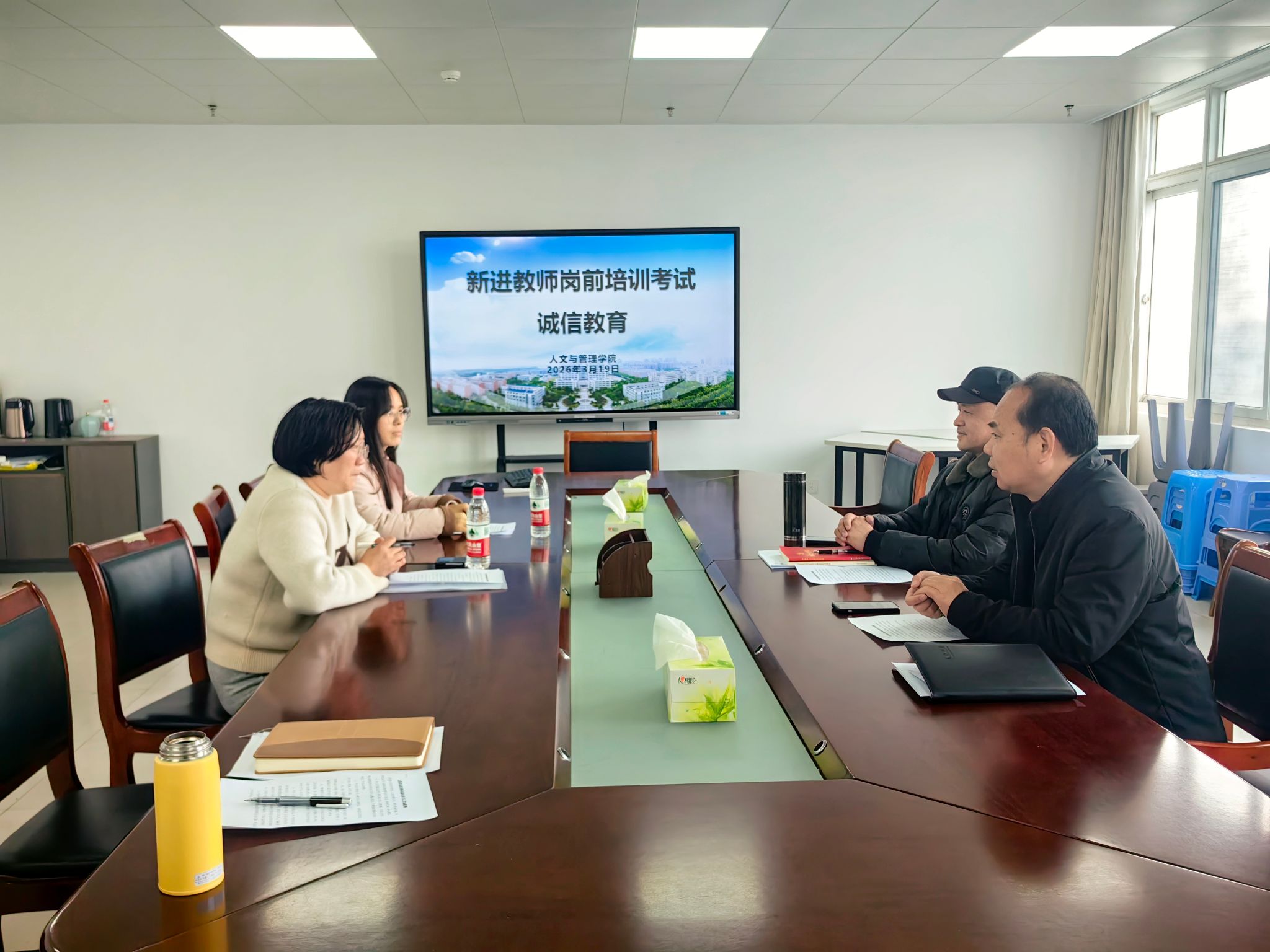 为加强师德师风建设,强化新进教师诚信应考意识,3月19日,太阳集团2018登录网址组织李露、赵婷两位教师开展岗前培训结业考试诚信教育。学院党委书记王军、院长王国平主讲,为参考教师筑牢诚信应考思想防线。