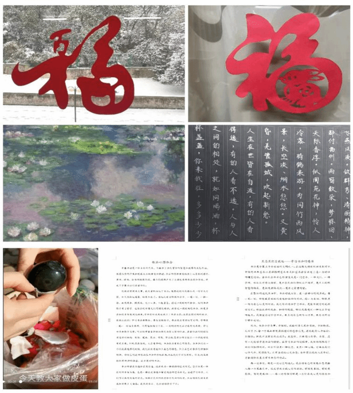 习传统技能,徜徉文化殿堂。为传承弘扬中华优秀传统文化,激发同学们传承和弘扬中华文化的热情,开展了“艺术赋能青春,文化多彩假期”的主题活动。同学们学习剪纸、书法、编织、雕刻、绘画、中华美食制作等传统技能,并通过撰写心得收获、拍摄微视频记录等方式,进行分享交流、推荐介绍。同学们纷纷表示在学习过程中深刻感受到了中华文化的博大精深和独特魅力。