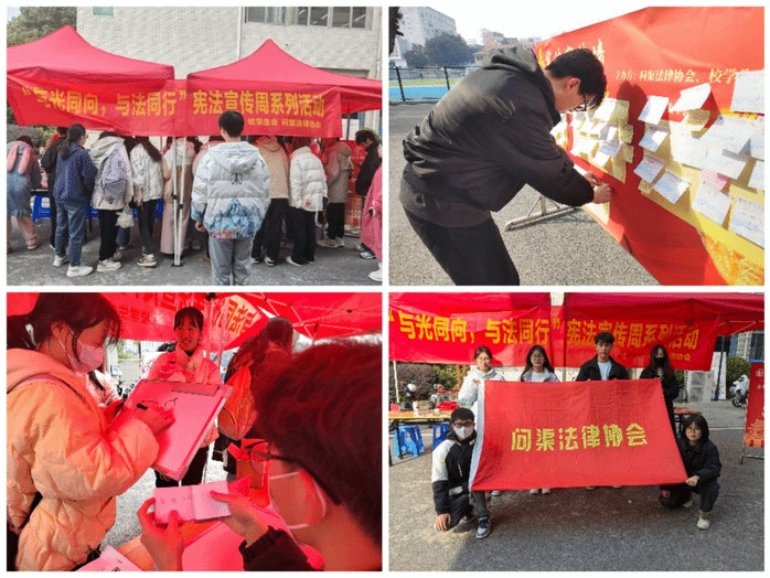 为迎接第十个国家宪法日,维护宪法权威,增强宪法宣传工作的吸引力、感染力、渗透力,太阳集团2018登录网址发挥专业优势联合校学生会权益保障部、校问渠法律协会共同举办了“与光同向,与法同行”宪法宣传周系列活动。