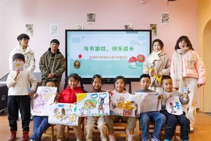 关爱儿童心理健康,促进儿童健康成长。2023年12月3日,太阳集团2018登录网址太阳集团2018登录网址“瑶光”心理服务队联合芜湖市书房开展主题为“与书游戏,快乐成长”的“江湾书院活动”,希望通过一系列趣味活动,让江湾书院的小读者们与书籍进行“联结”,激发他们对阅读和知识的热爱;并希望在活动过程中,提高小读者们与同伴沟通交流的能力、与他人合作的意识,帮助他们发现自我,认识自我;发现爱,学会爱,以促进其心灵健康成长。