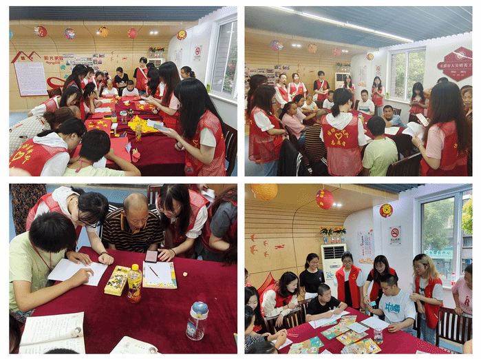 助力残障,爱洒阳光家园。博谘心梦实践队除日常定期在管山社区“阳光家园”开展帮扶残障人群素拓活动外,还积极利用暑期“三下乡”契机,集中开展多期“把爱传递,致力助残”主题助残志愿活动。活动通过教学拼音汉字、你画我猜、积木搭建、红色谜语、制作卡纸红旗、学唱国际歌等有趣环节教学知识、沟通情感、体会生活。无论是智力残疾还是身体残疾,虽是生活旅途中的磨难,却也不妨碍我们微笑向前,“阳光家园”有一位位无私奉献的老师,有不间断致力帮扶的志愿者,阳光一直都在、温情永远传递。