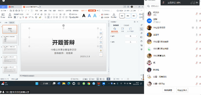此次开题答辩分四个组开展,2023届59名公管专业学生在规定时间内从选题依据、选题目的和意义,研究思路和论文工作进度安排等方面对毕业论文进行了详细阐述。答辩评委对同学们的开题报告进行了认真审阅,逐一点评,对存在的问题提出了切实可行的修改意见和建议。