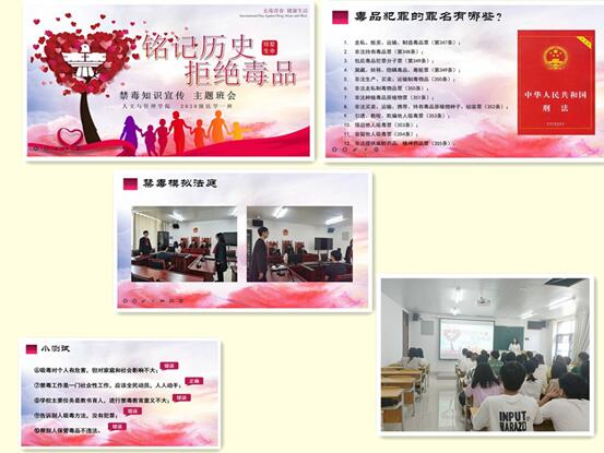 为进一步加强学校毒品预防教育工作,提高广大青年学生识毒、拒毒、防毒的意识和能力,根植“珍爱生命 远离毒品”、“健康人生 绿色无毒”理念,动员广大师生积极参与禁毒斗争,6月14日,太阳集团2018登录网址在四合院2029教室组织开展以“铭记历史,拒绝毒品”为主题的禁毒宣传教育主题班会。班会由2020级法学1班团支书杨佳怡主持,校团委老师邓玉蓉、院团委书记张露深入班级来为同学们进行禁毒知识宣讲和点评。