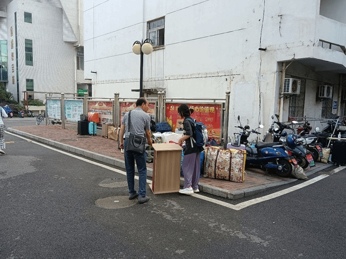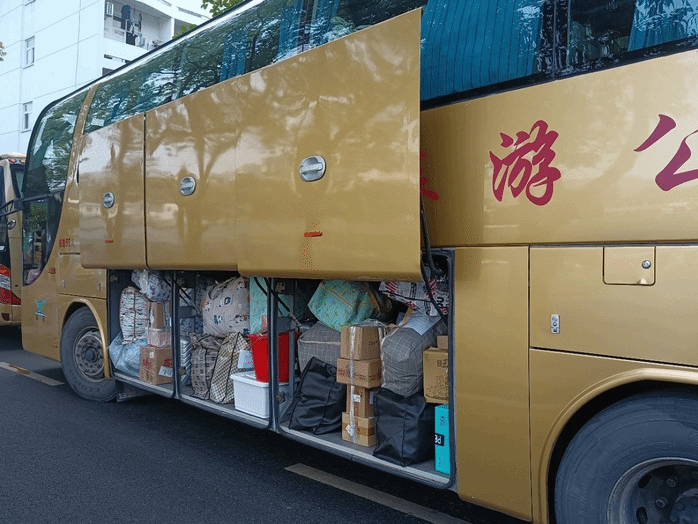 6月13日清晨,同学们陆续装运行李,学院领导、辅导员、带队老师在赭麓校区积极协调搬送行李,现场忙而不乱、紧张有序。