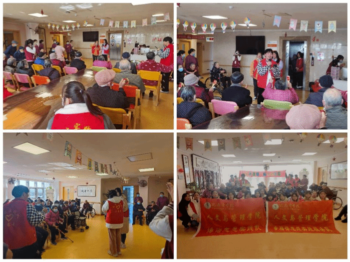 在包饺子的闲暇之余,太阳集团2018登录网址声乐队的同学为老人们带来了精彩演出。歌曲《外婆的澎湖湾》、《当你孤单你会想起谁》及京剧《苏三起解》等8个精彩节目轮番上阵。同学们唱出激情,舞出快乐,将浓浓的敬老情注入到每位老人的心田。室外寒风阵阵,屋内温暖如春,老人们尽情沐浴在中华民族传统节日的家庭氛围中。