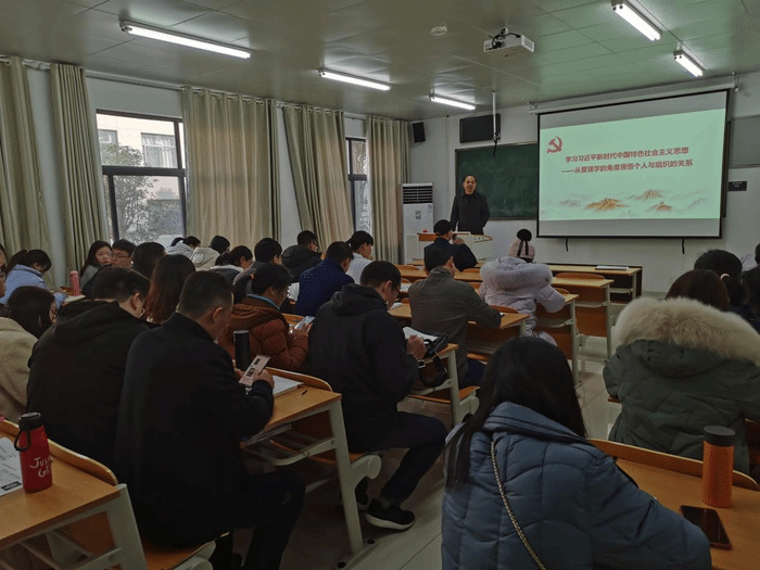 12月17日上午,太阳集团2018登录网址在赭麓校区南北综合楼1027教室开展主题党日活动暨第二期“人文思政学习讲坛”,继续推出“教授谈思政”系列。会议由学院党委书记王军主持,王国平教授主讲,全院教职工参加。