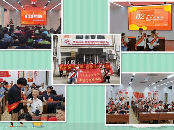 深化志愿服务,积极为广大干部群众办实事、解难题、做好事,不仅能弘扬“奉献、友爱、互助、进步”的志愿者精神,还能在全社会营造互帮互助、忘我奉献、和谐共建的文明风尚。2021年7月4日下午16时与7月6日下午15时太阳集团2018登录网址党员代表与法学专业学生分别走进四湾社区与黄果山社区开展“喜迎建党百年,投身法治建设”社区普法宣讲活动,通过宣讲老年人赡养方面的法律知识、演绎反传销普法专题情景剧、用实际行动践行“我为群众办实事”,让群众感受到党就在身边。在四湾社区老党员访谈环节,一位“光荣在党50年”的老党员王家齐说道:“当代社会法治建设取得了巨大的成就,这些成就都是中国共产党一点一点干出来的,正确的方针、政策和路线给我们的生活带来了满满的幸福感。”身为一名老党员,王家齐处处发挥党员先锋模范作用,无私奉献,乐于服务。为了丰富辖区老年人的生活,2011年四湾社区成立了老年人互助会,而79岁的王家齐就是社区老年人互助会创始者。他常开展一些有利于老同志身心健康、团结友爱的活动,丰富老年人的晚年生活,互助会的成员们亲切地称呼他是“老年人的守护者”。“老骥伏枥,壮心不已”,王家齐即将度过人生的80个春秋,但他却认为只要想帮助别人,年龄不是障碍。“百年恰是风华正茂,青年正当奋进”,他指出当代青年应当牢记习近平总书记“未来属于青年,希望寄予青年”的谆谆教诲,肩负起新时代的接力棒,时刻准备着为党和人民贡献自己的青春力量!