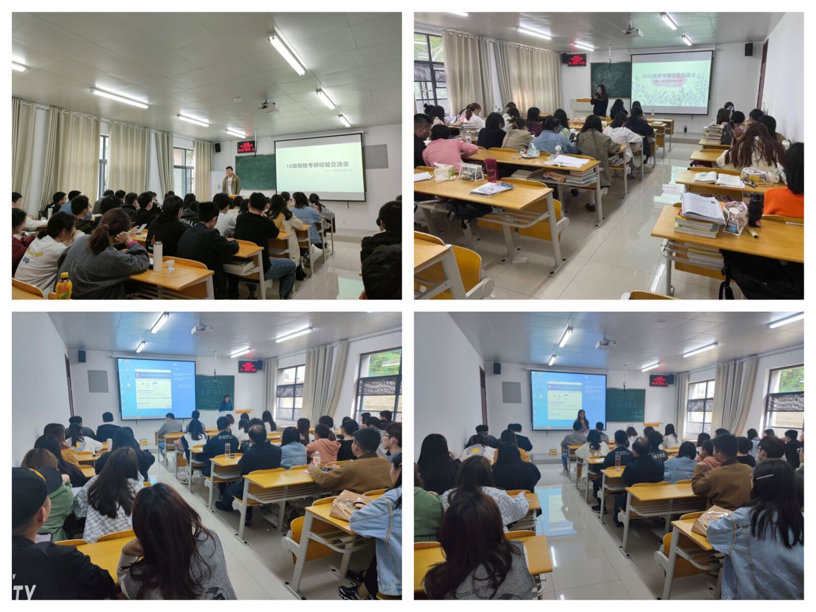 部分2021年考取研究生的同学为2018级全体学生按专业分场次分享备考、初试、复试相关经验,为2018级学生在院校选择、考试复试过程中提供建议参考,让同学在备考过程中少走弯路,节约时间专心备考,得到学弟学妹们的一致好评。