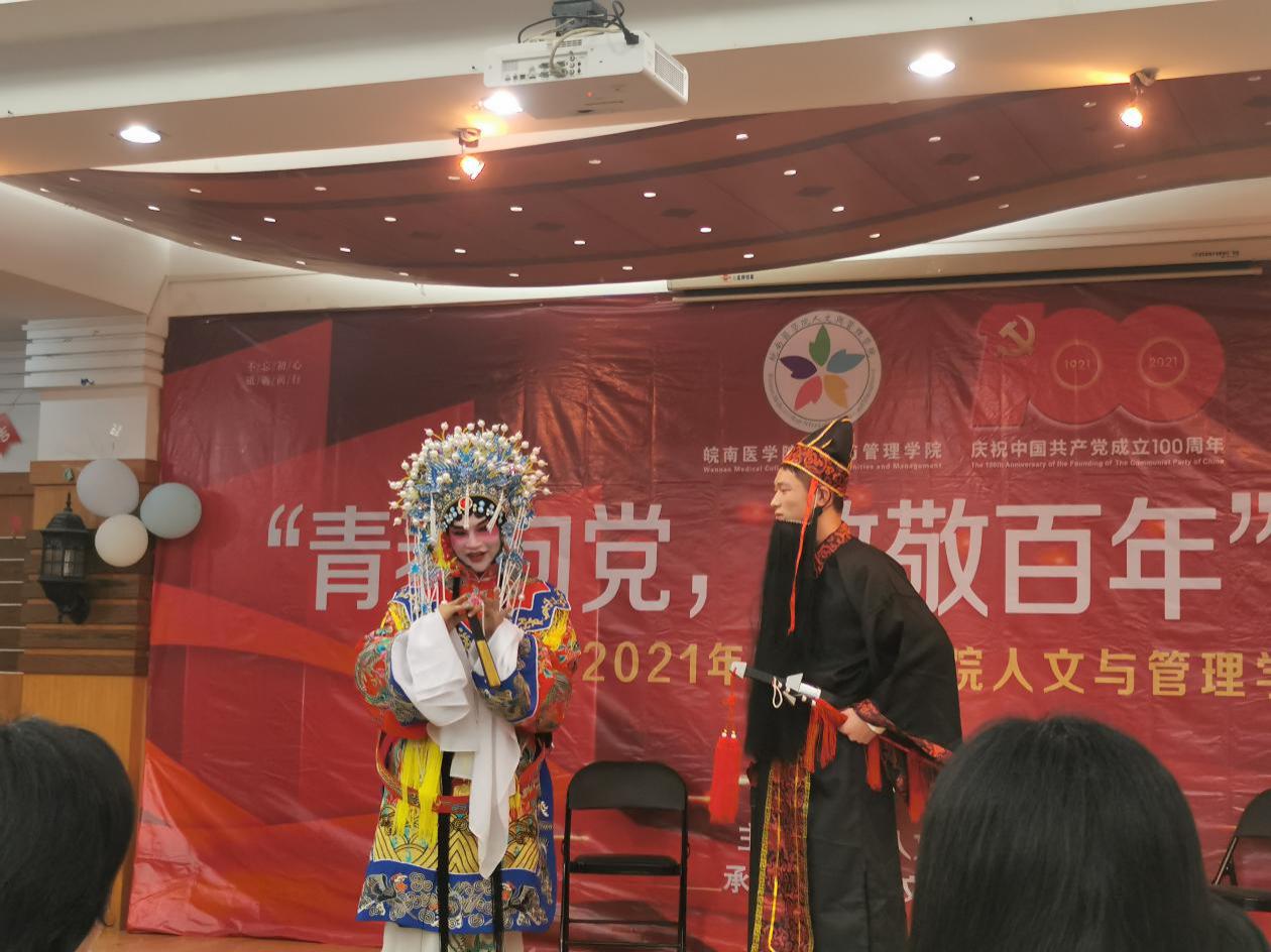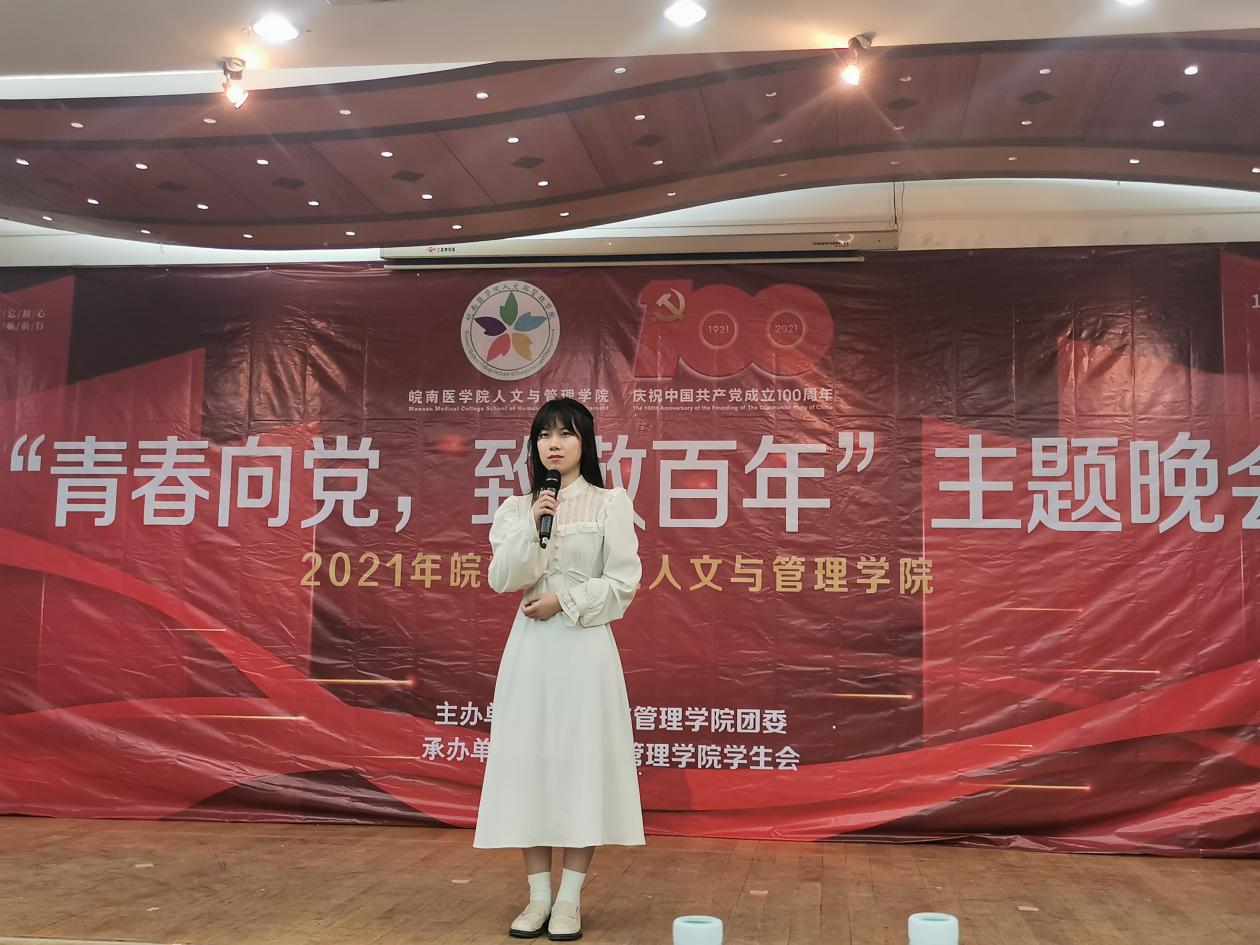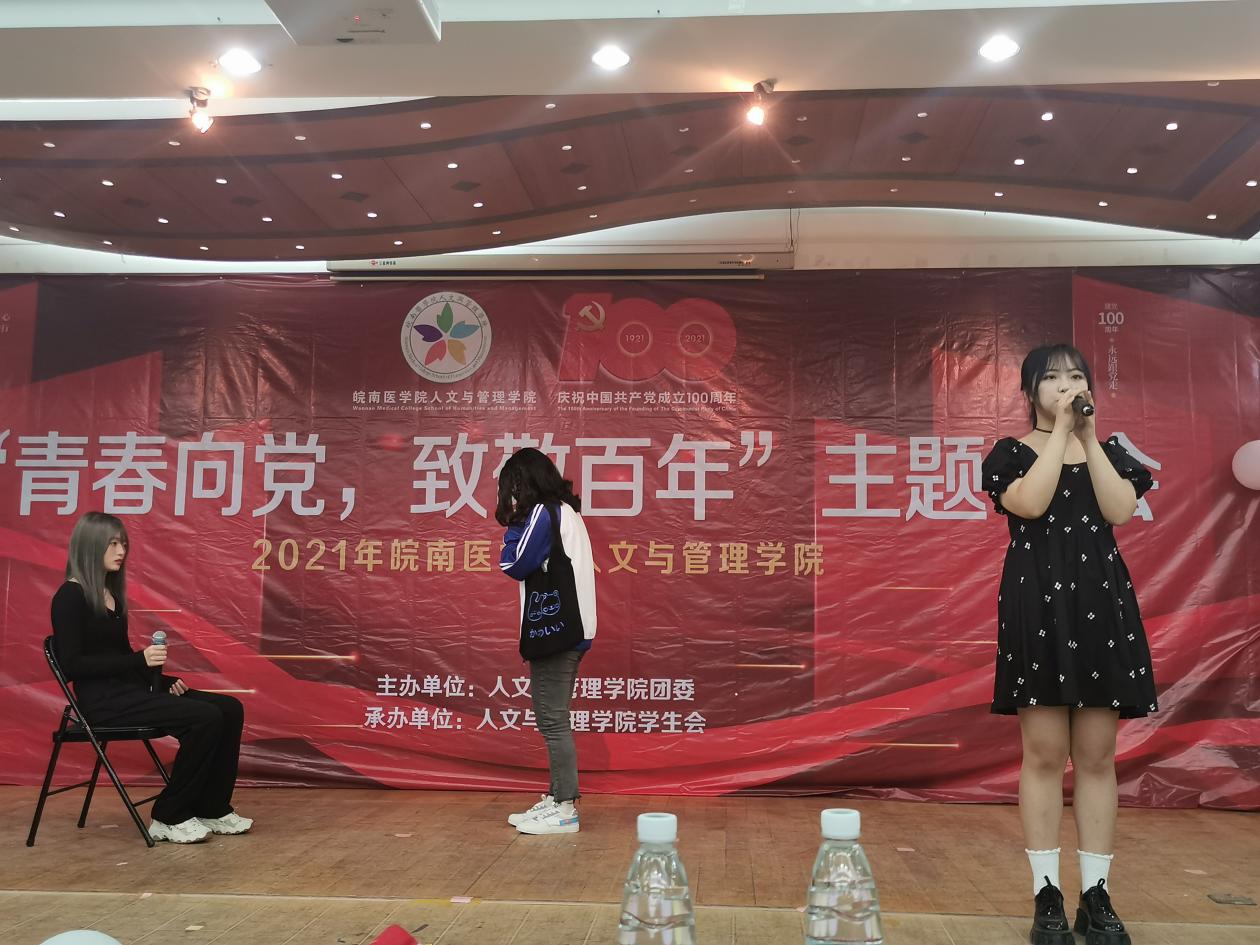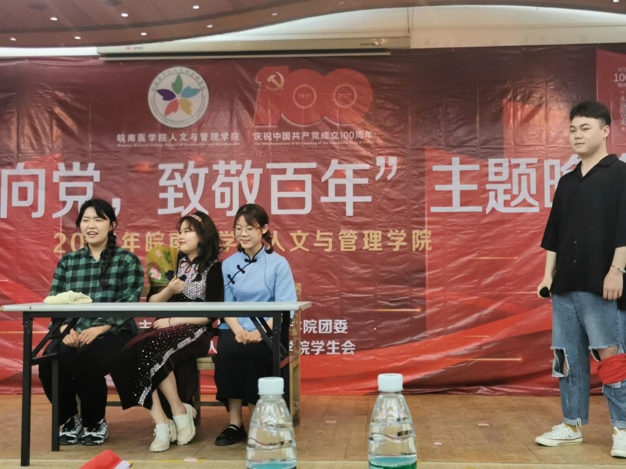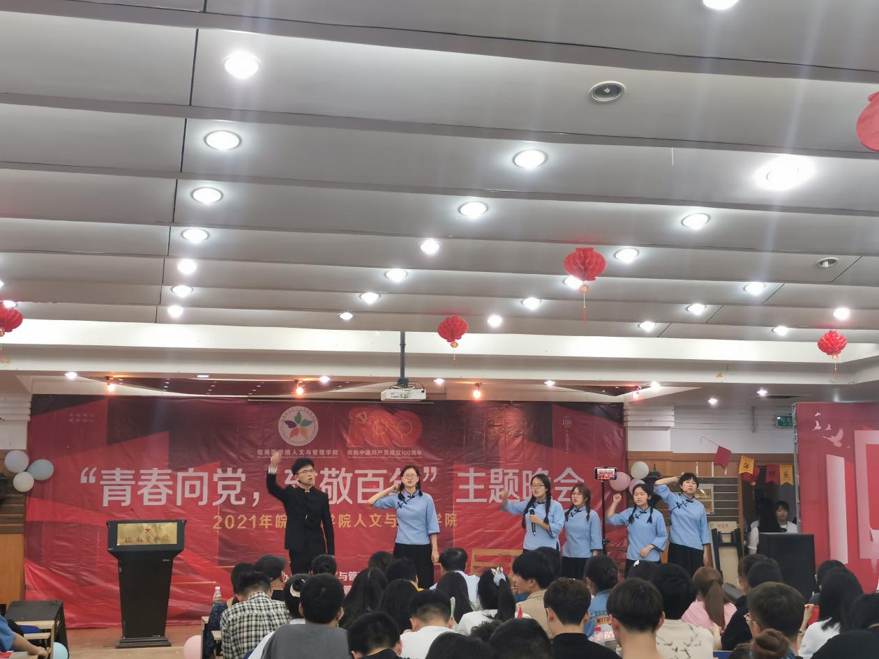 整个晚会精彩纷呈,高潮迭起,表演形式丰富,内容新颖。一部洋溢着青春的舞蹈《Yes,OK!》拉开了晚会的序幕。1921-红船启航板块中德语歌曲《生命》、吉他独奏《忽然》情深义重,让人不由动容;舞台剧《五四风雷》、《刘胡兰》仿佛带我们回到了那个激昂的年代,展示了当代大学生不忘历史昂扬向上的精神面貌。1949-希望田野板块中,动听的歌曲独唱《清明上河图》、《从前慢》,歌曲串烧《今日少年》,惊艳的京剧表演《霸王别姬》令观众折服,小品《你好,旧时代》,绚丽的歌舞《光》、《寄明月》获得了一致好评;2021-继往开来板块中歌舞《大鱼》,小品《多彩少年》诙谐生动的表演引发阵阵笑声,诗朗诵《一群青年写下的诗》为在场师生上演了一场视听盛宴,无不彰显着青春风采,充斥着青春活力。穿插其中的党史问答互动抽奖环节更是将晚会推向了高潮,同学们积极参与,晚会现场气氛热烈。最后,晚会在《明天会更好》合唱中落下了帷幕。