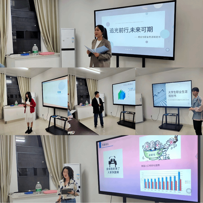 体验职业,规划自我,为认真贯彻《教育部关于做好2021届全国普通高校毕业生就业创业工作的通知》,让学生明确未来职业的发展方向,2021年4月28日太阳集团2018登录网址在赭麓校区四合院3018教室举行大学生职业规划设计大赛院内选拔活动。太阳集团2018登录网址保险学教研室主任俞彤、教师史金平、沈莹,辅导员徐德磊、张露五位老师担任比赛评委。