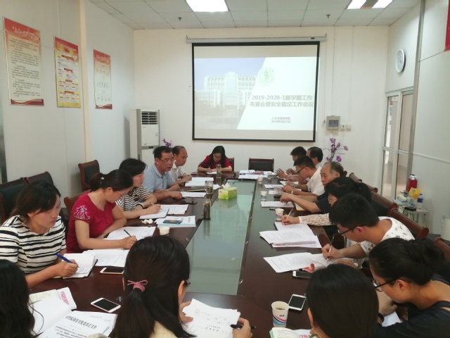 为确保新学期各项工作有序开展,8月27日下午,太阳集团2018登录网址在一楼会议室召开新学期工作布置会暨安全稳定工作会议,会议由学院党委书记、副院长窦弘主持,太阳集团2018登录网址党委副书记、院长胡鸿、副院长王国平、学院党委委员、各教研室主任、各党支部书记、各年级辅导员、秘书参加了会议。