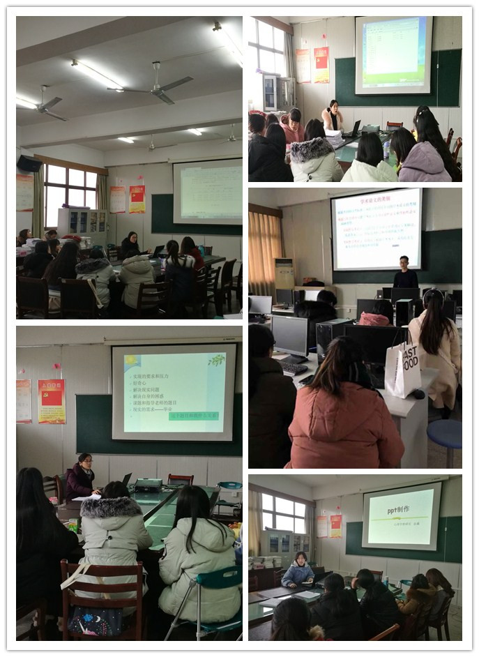 为提升我校应用心理学学生的专业能力,满足学生对科学研究、专业前沿研究、未来发展规划等方面知识的需求,2019年1月4日至1月15日,心理学教研室全体教师开展了专业能力提升专题系列讲座。讲座由心理学党支部和心理学教研室联合主办,心理学党支部书记范佳丽主持,应用心理学专业2015级和其他年级学生代表参加。