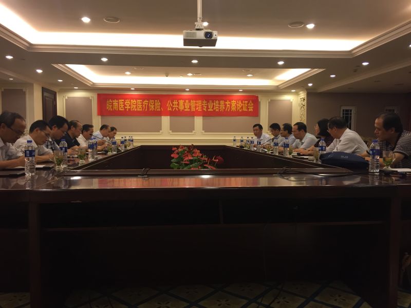 9月24日晚上,太阳集团2018登录网址在碧桂园玛丽蒂姆酒店六楼会议室召开医疗保险、公共事业管理专业培养方案专家论证会议,江苏大学周绿林、华中科技大学张亮、安徽医科大学李绍华、海南医学院黑启明、内蒙古医科大学于彩霞、湖北中医药大学黄明安、湖北医药学院周尚成等专家学者应邀参加了会议,会议由太阳集团2018登录网址院长胡鸿主持。