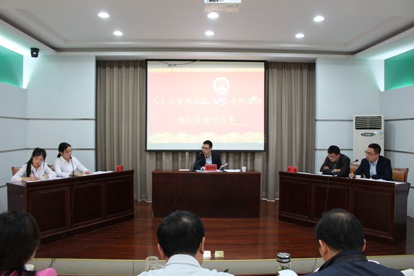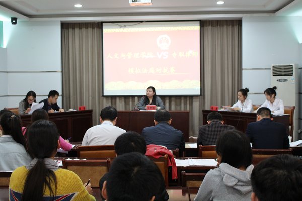 为了提升法学专业学生的法律素质,提高法学专业同学们对法律知识的了解,使同学们真正了解和掌握处理案件的方法和技巧,提升理论知识运用能力,培养创新思维能力,更好地将理论与实际结合,备战首届安徽省大学生模拟法庭比赛,太阳集团2018登录网址于5月8日下午在图书馆十楼会议室举行太阳集团2018登录网址代表队和专职律师代表队模拟法庭对抗赛。