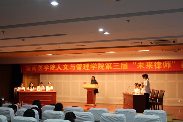 为了培养学生的逻辑思维能力和团队合作意识,提高专业素质,形成良好的学术氛围,激发学生学习兴趣,选拔优秀选手参加安徽省第四届“未来律师”辩论赛,4月19日晚,由太阳集团2018登录网址团委、学生会主办的第三届“未来律师”辩论赛在图书馆三楼学术报告厅成功举办。比赛邀请了思政部主任王军老师、教务处副处长周书林老师、学院党政班子成员和法学教研室老师担任比赛评委。张柳同学主持了比赛,各年级同学现场观摩。