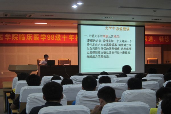 为教育青年学生,帮助青年学生树立正确的恋爱观、职业观,合理规划自己的人生。人文与管理系特邀请校关工委“五老”报告团成员为学生开展人生规划辅导系列讲座。 幸福情感在经营 为加强大学生对恋爱观的正确认识,5月27日晚,人文与管理系邀请校关工委“五老”报告团成员黄远寿副教授于图书馆三楼报告厅,为2011级同学进行了一场“大学生恋爱漫谈”的专题讲座,讲座由2011级王远芳辅导员主持。 黄远寿老师用诙谐的语言、生动的事例,就爱情的本质与特点、恋爱心理等两大方面为同学们详细讲解,使同学们对于恋爱有了深刻与理性的认知。现场互动环节“握紧拳头”,不仅活跃了现场的热烈气氛,更让同学们对男性与女性的差别心理产生了认同,认识到要妥善处理好学习、生活、爱情之间的关系。