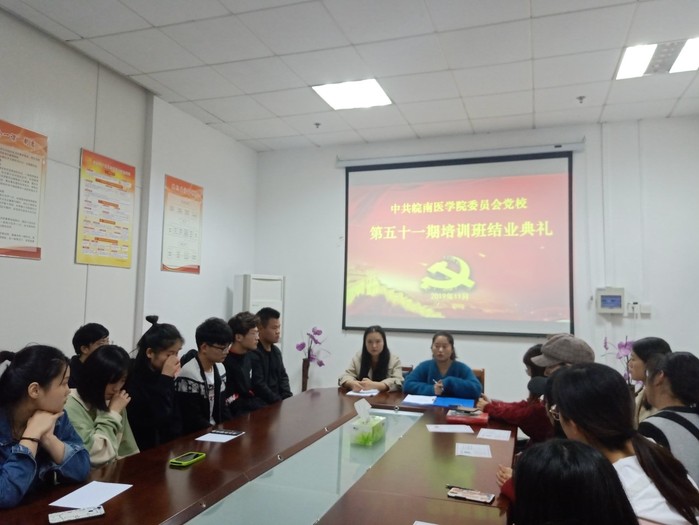2019年11月8日晚,中共太阳集团2018登录网址委员会党校第五十一期积极分子培训班结业典礼在太阳集团2018登录网址会议室成功举办。本次结业典礼由第五十一期党校班主任成铭以及学生第一党支部书记訾梦婷主持,17、18级入党积极分子参加。