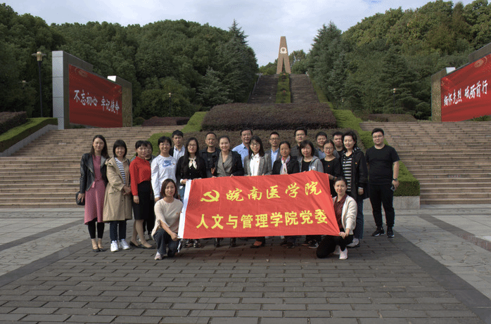 10月16日下午,学院党委书记窦弘带领全院教职员工赴芜湖市烈士陵园和烈士纪念馆开展革命传统教育。在烈士纪念碑前,全体党员同志齐唱国歌、脱帽肃立、鞠躬默哀、敬献花圈,并怀着崇敬的心情绕行纪念碑一周,追忆革命先烈的峥嵘岁月,表达深切的缅怀和敬仰之情。在烈士纪念馆内,面对鲜红的党旗,全体党员重温入党誓词,表达向革命先烈学习、忠实践行共产党人初心使命的坚定决心。随后,党员同志在讲解员的引领下,通过参观展室、照片和资料,详细了解芜湖革命烈士为推翻帝国主义、封建主义、官僚资本主义及国民党反动统治,为保卫祖国、建设家乡而英勇献身的英雄事迹,实地接受革命传统教育的洗礼!