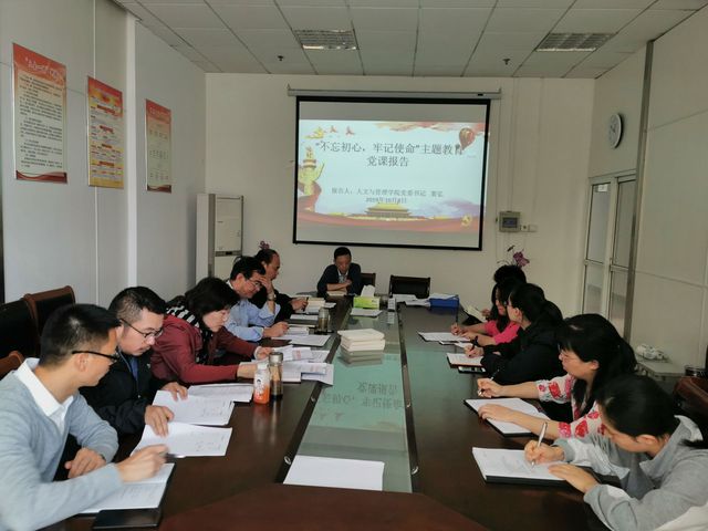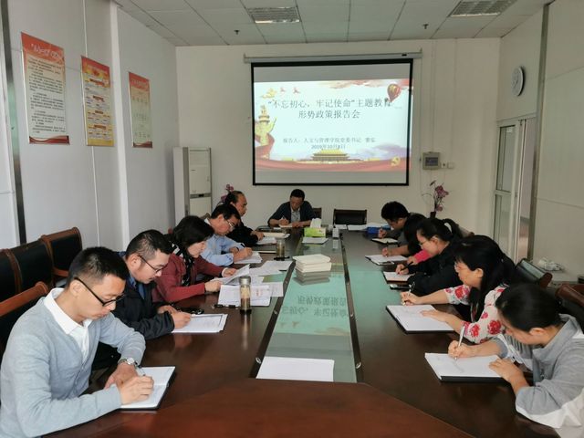2019年10月8日中午,太阳集团2018登录网址在学院一楼会议室组织开展“不忘初心、牢记使命”主题教育形势政策报告会和党课教育,学院党委书记窦弘主持会议,学院党委委员和全体党支部书记参加会议。