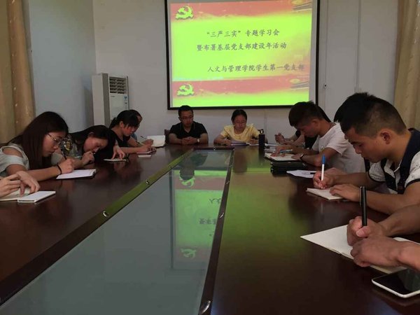 2015年6月12日下午,太阳集团2018登录网址学生第一党支部在学院一楼会议室召开“三严三实”专题学习会暨党支部建设年活动专题部署。会议由党支部书记张欣慧主持,全体党员参会。