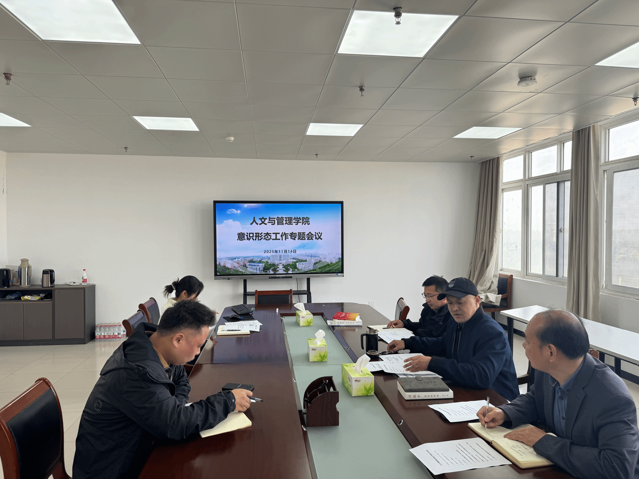 强化思想引领,防范风险隐患。会议以思想建设为核心,组织学习《习近平谈治国理政》第五卷和习近平总书记关于意识形态工作的重要论述,夯实党委委员意识形态工作理论基础,并对下一步意识形态工作进行了安排和部署。会议总结学院2025年上一阶段意识形态工作成效,客观分析研判当前工作面临的风险点与潜在隐患,集体研讨制定应对举措,进一步完善意识形态工作责任制,筑牢学院意识形态安全防线。