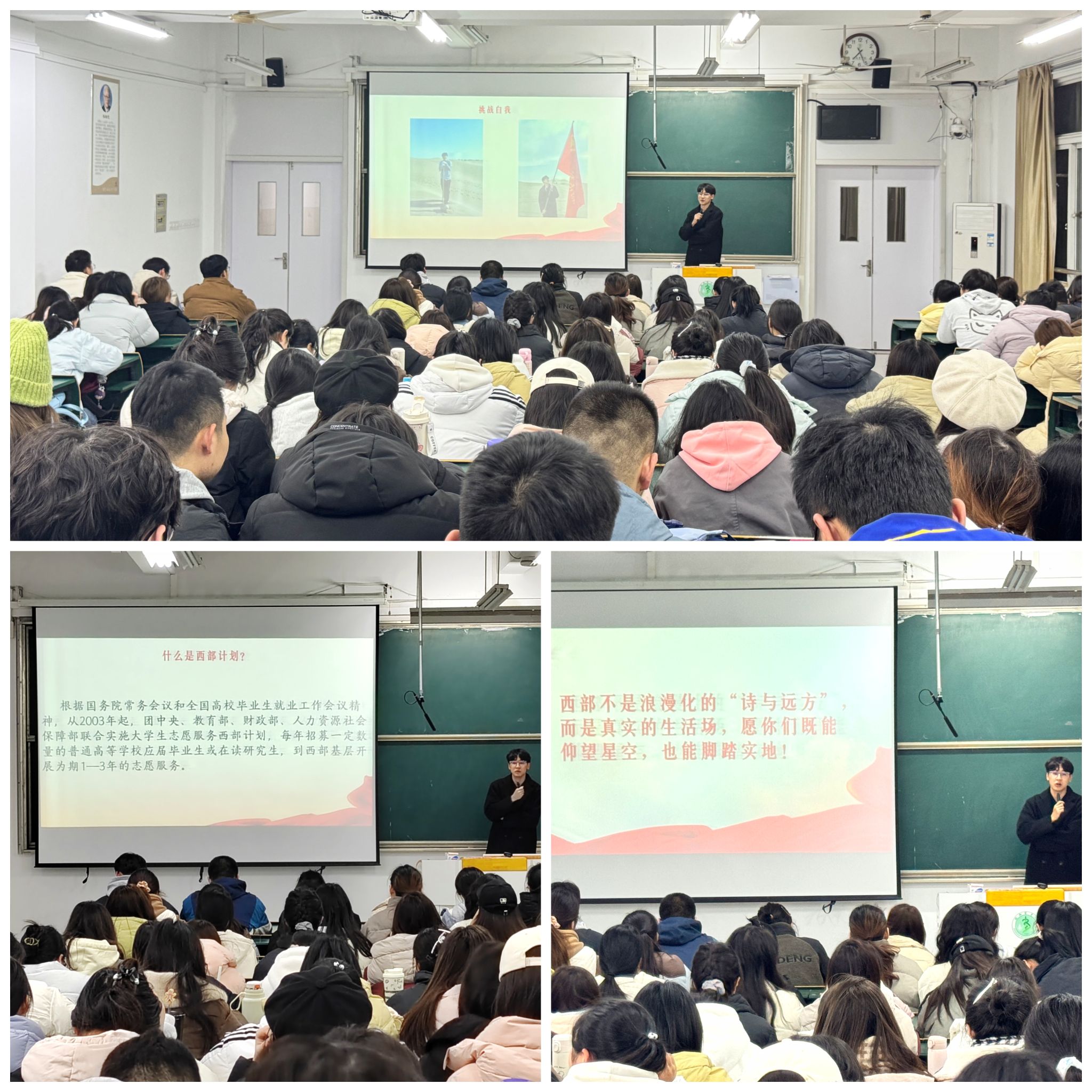 在全国第62个学雷锋日暨第26个中国青年志愿者服务日来临之际,3月4日,太阳集团2018登录网址邀请2024年西部计划志愿者、2024届法学专业校友赵庆伟宣讲志愿服务精神。讲座由学院团委书记张露主持,全院各年级120余名同学参加。
