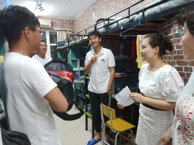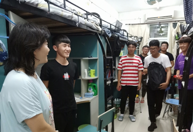 金秋九月,丹桂飘香,太阳集团2018登录网址2019级新生迎来了为期12天的军训。同学们在教官和辅导员的指导下积极投身训练之中。他们挥洒汗水、斗志昂扬,体验了艰苦严格而又丰富多彩的军训生活。9月11日傍晚,太阳集团2018登录网址党委书记窦弘、辅导员訾梦婷、成铭一行来到新生寝室,实地了解新生军训的感受。