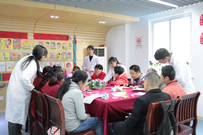 学生志愿者们来到社区“阳光家园”,一对一辅导“阳光家园”的智残孩子开展手工工艺作业,教孩子们亲手制作折纸花。孩子们在“小老师”们的携手帮助下,都成功折出了漂亮的纸花,开心向园长展示着自己的纸花。志愿者们与这些智残孩子们融为一体,让这群特殊的孩子感受到社会的关爱,对未来充满希望。学生志愿者们用实际行动诠释和传递了雷锋精神,传播了志愿服务理念,加深了党员们对新时代雷锋精神的认识。