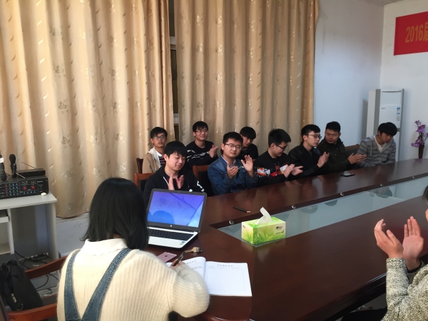 3月29日下午,读书活动在西辅楼一楼会议室正式开展。共分六组,每个宿舍为一组各派出一名代表进行读书交流,每位代表提前充分准备讲稿和制作的PPT,每人5至10分钟演讲时间,演讲过程中全班学生积极参与,气氛活跃,充溢着一种轻松、愉快、和谐的氛围,辅导员章蕾老师全程进行指导,并与学生进行交流,最终活动圆满结束。