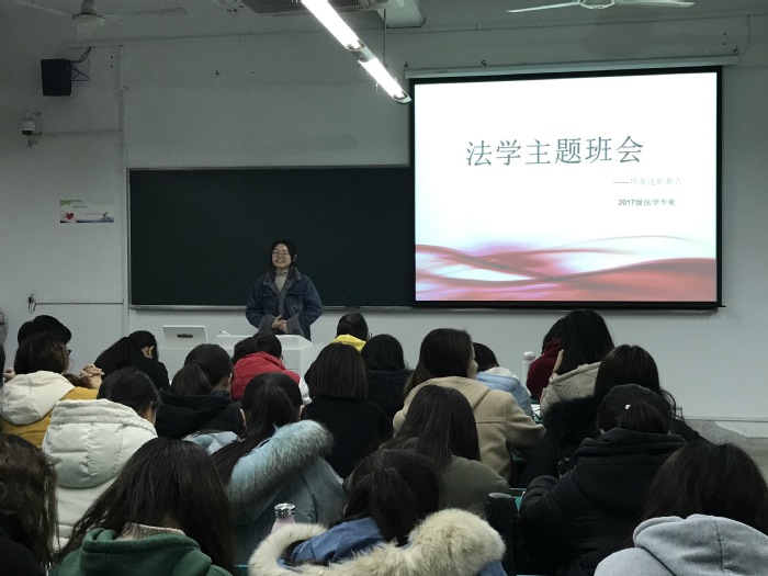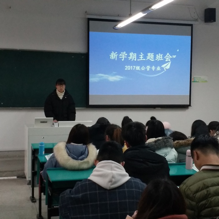 述职是一种展示,更是一个学习的过程。述职大会上,2017级共34名班委以报告的形式从个人成长、班级建设、班级活动开展、学习氛围营造等方面,对上一学期的班级工作进行了详细介绍。“社会变化瞬息万变,集体好个人才会好”这是法学(1)班组织委员的工作体会;“‘团结就是力量’,这句话永远不会过时,我们要将班级拧成一股绳”这是心理班长的美好憧憬。班委们用深情动人的述职演讲博得了在场同学的阵阵掌声,整个述职大会在欢快的氛围中进行。述职报告结束后,辅导员也与大家进一步交流。首先,曹冕侯对2017级班委们的辛勤付出和努力工作表示感谢,鼓励学生干部积极提高团队意识,培养合作能力,在锻炼中成长、进步,并提出“优良学风班”的建设目标,努力把2017级人管学生建设成富有活力的优秀集体。在交谈的同时,曹冕侯也指出,学习是我们当前最紧要的任务,“清考”制度的取消也给大家增加了压力,因此必须将学习落实到实处;同时要多看专业文献,为自己制定的大学学业规划做准备,为未来做打算。