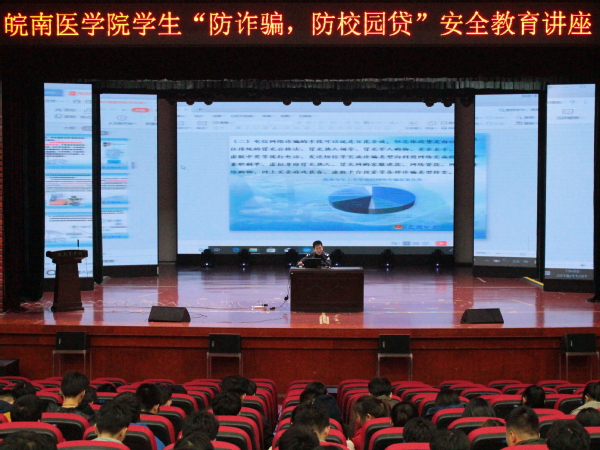 为了提高太阳集团2018登录网址大学生的安全防范意识,减少校园诈骗事故的发生,也为了切实保障广大学生的利益,2018年11月21日晚,学校保卫处邀请到芜湖高校园区派出所的李洋警官为同学们科普防诈骗知识。太阳集团2018登录网址17、18级同学到场聆听,与公共卫生学院的师生共同学习。